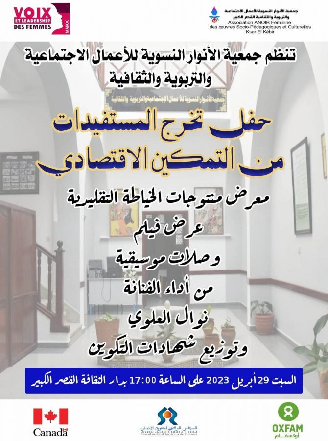 19:00 توزيع الشواهد على المستفيدات من التمكين الحرفية.