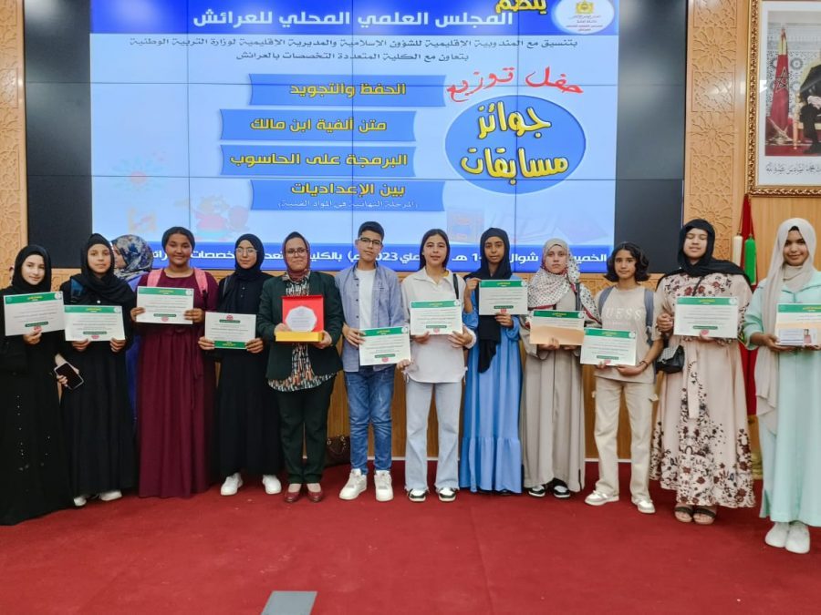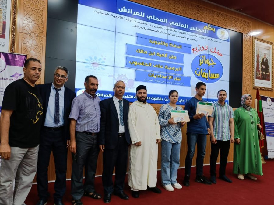 احتضنت الكلية المتعددة التخصصات بالعرائش، يوم الخميس 20 شوال 1444هـ / الموافق 11 ماي 2023، المرحلة النهائية من المسابقة الإقليمية التاسعة بين الاعداديات التي ينظمها المجلس العلمي المحلي للعرائش، بتنسيق مع المديرية الإقليمية لوزارة التربية الوطنية والتعليم الأولي والرياضة بالعرائش، تحت شعار ” من أجل مدرسة ذات جودة للجميع ” بحضور أعضاء وعضوات المجلس العلمي المحلي ، و المندوب الإقليمي لوزارة الأوقاف و الشؤون الإسلامية ، و ممثل المديرية الإقليمية لوزارة التربية الوطنية ، و ممثل عن الكلية المتعددة التخصصات بالعرائش ، و عدد من المرشدين الدينين و الأطر الإدارية والتربوية و الطلبة و تلميذات و تلاميذ المؤسسات المشاركة.