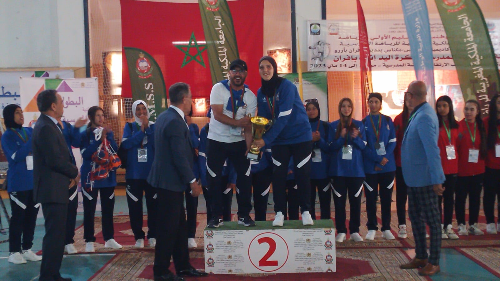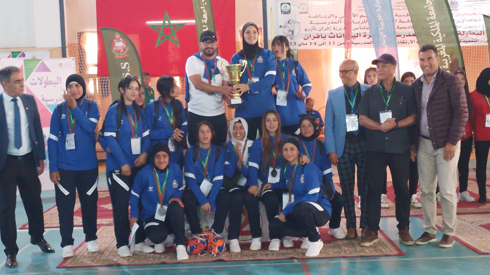 مباريات البطولة الوطنية لكرة اليد اناث، التي احتضنت أطوارها مدينتي إفران وأزرو، أبانت عن تميز وتفوق الفرق الممثلة لمديرية العرائش التابعة لجهة طنجة تطوان الحسيمة، حيث أسفرت النتائج النهائية عن تتويج فريق الثانوية التأهيلية وادي المخازن بالقصر الكبير تحت إشراف الأستاذ المقتدر محمد فيكيسن بلقب البطولة الوطنية المدرسية لكرة اليد إناث فئة U15، بعد فوزه فريقه على فريق الثانوية الإعدادية مولاي رشيد ممثل مديرية تيزنيت ب 14 مقابل7 ، فيما نالت الثانوية التأهيلية المحمدية بمدينة القصر الكبير تحت اشراف الأستاذ المقتدر محمد دريوش ، لقب الوصيف بإحرازها الميدالية الفضية في فئة U18 بعد مقابلة قوية جمعتها بثانوية الفتح التأهيلية بمدينة تاوريرت ممثلة جهة الشرق ، و التي انتهت لصالح هذه الأخيرة ب25 مقابل 24.