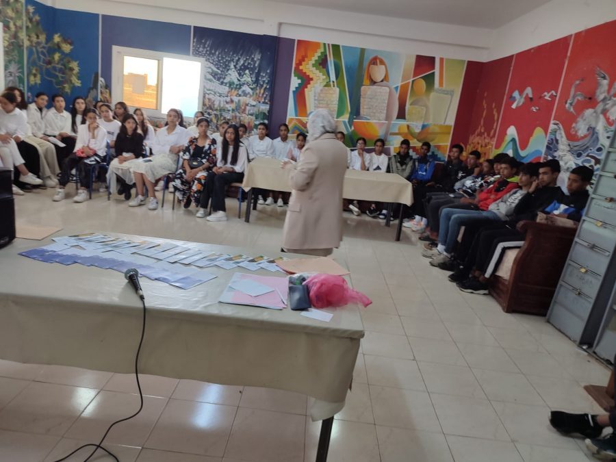 بدورها رئيسة جمعية أسرتي الأستاذة لطيفة علوشة قدمت كلمة بالمناسبة وشكرت اطر المؤسسة الادارية والتربوية على فتح ابوابها أمام جمعيات المجتمع المدني من اجل تحسيس وتوعية التلاميذ حول الاخطار والآفات التي يمكن أن تعرقل مسار حياتهم المدرسية.