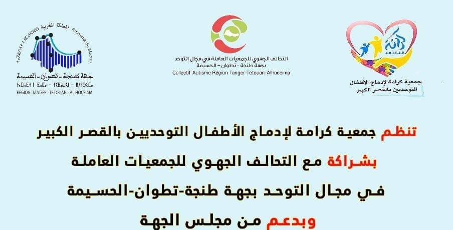 تعلن جمعية “كرامة” لإدماج الأطفال التوحديين بالقصر الكبير عن اختتام برنامجها السنوي لهذا الموسم بدورة تكوينية لفائدة أمهات وأولياء أمور الأطفال المنتسبين للجمعية وكذا أخصائييها وأطرها التربوية التابعة لمركزها في موضوع: