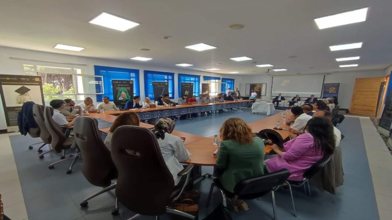 _ عميد كلية المتعددة التخصصات بالعرائش محسن بناني امشيطة، ونوابه بالكلية.