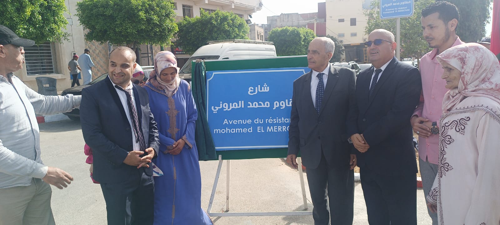 الستار على اللوحة التشويرية للشارع الذي يحمل اسم المقاوم المرحوم محمد المروني ؛ الذي أعقبته