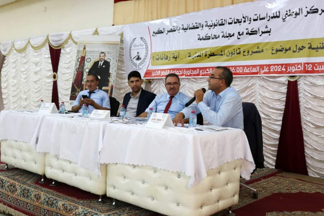 ناقشت الندوة الوطنية : مشروع قانون المسطرة المدنية ، أية رهانات ؟ المتغيرات والمستجدات وآثارها القانونية على حقوق المتقاضين ، وذلك بقاعة المحاضرات الكبرى المجاورة لمقر جماعة القصر الكبير ، ابتداء من الساعة الخامسة مساء من يوم السبت 12 أكتوبر 2024. المركز الوطني للدراسات والأبحاث القانونية والقضائية بمدينة القصر الكبير بشراكة مع مجلة ” محاكمة“