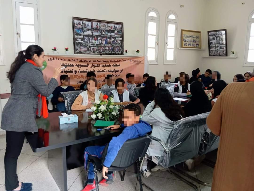 انطلقت بمقر جمعية الأنوار النسوية بمدينة القصر الكبير يوم الخميس28 نونبر 2024 ، الأيام الأممية الستة عشر، لمناهضة العنف ضد النساء والفتيات،تحت شعار “متحدات ومتحدون لمواجهة العنف” ، و الموجهة لفائدة تلامذة المدارس لتحسيسهم بهذه الظاهرة التي تشكل آفة اجتماعية.