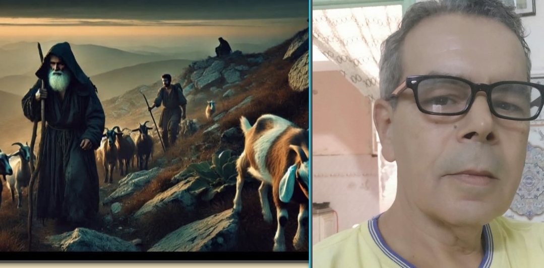 خلفه، كانت مجموعة من الماعز الصغيرة تسير بخطى غير مبالية، تعبث بالحجارة الصغيرة وتملأ السكون بصوت حوافرها الخافت. بدا المشهد كلوحة مرسومة، بسيطة لكنها مفعمة بالحياة، تُذكر كل من يراها بأن الأرض تستمر رغم أحزان ساكنيها.