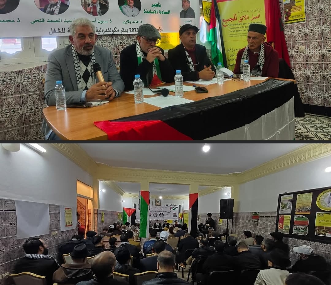 احتضن مقر الكونفدرالية الديمقراطية للشغل بمدينة القصر الكبير بعد عصر الأحد 16 فبراير 2025 أشغال ندوة: “راهن القضية الفلسطينية ومهام مناهضي التطبيع” التي دعت اليها الجبهة المغربية لدعم فلسطين ومناهضة التطبيع بالقصر الكبير ، بمشاركة الأساتذة : محمد الغفري ، عبد الصمد فتحي ، سيون أسيدون.