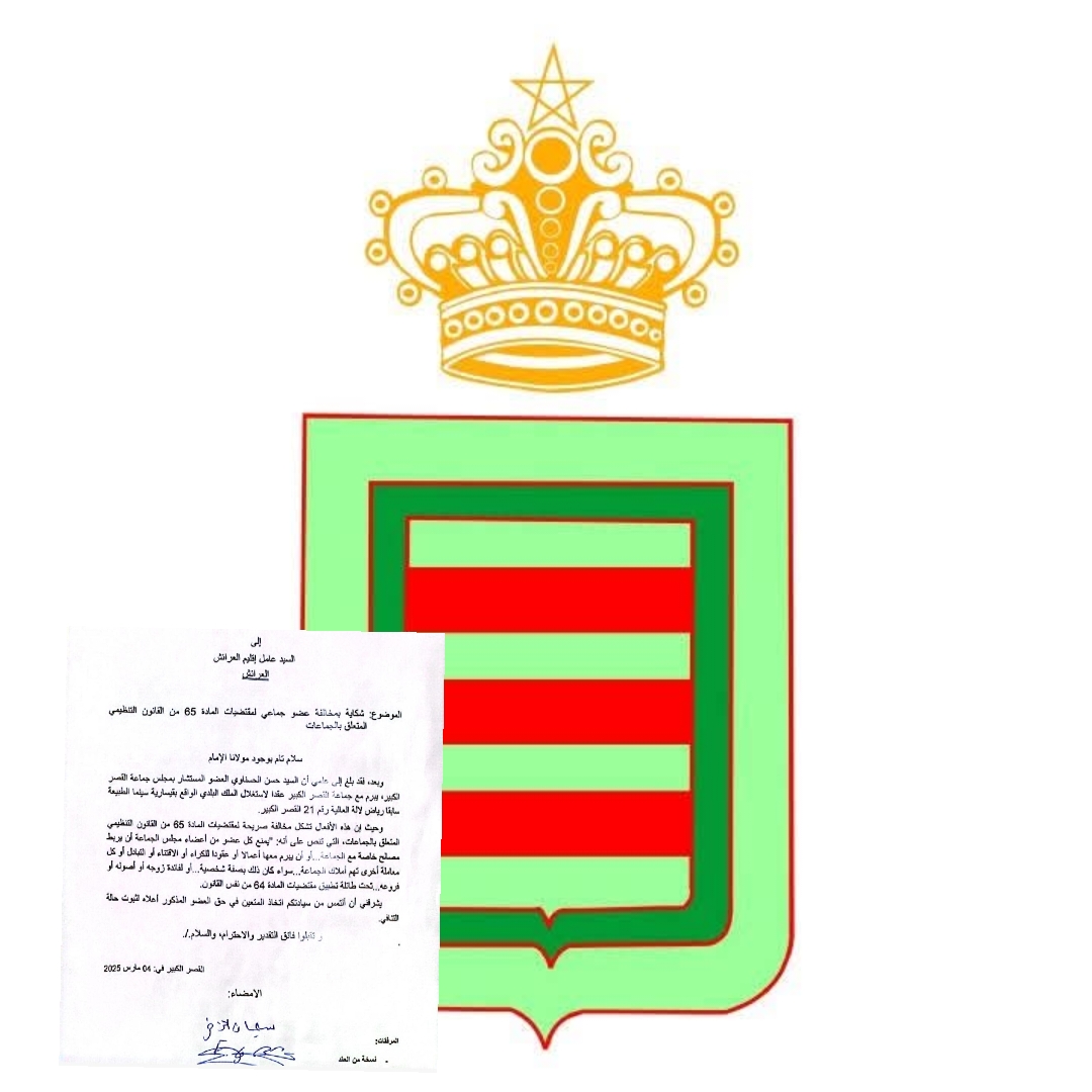 وجه المستشار الجماعي السابق بجماعة القصر الكبير ( س. خ ) الى السيد عامل إقليم العرائش شكاية مؤرخة ب 5 مارس 2025 لمخالفة عضو جماعي لمقتضيات المادة 65 من القانون التنظيمي المتعلق بالجماعات .