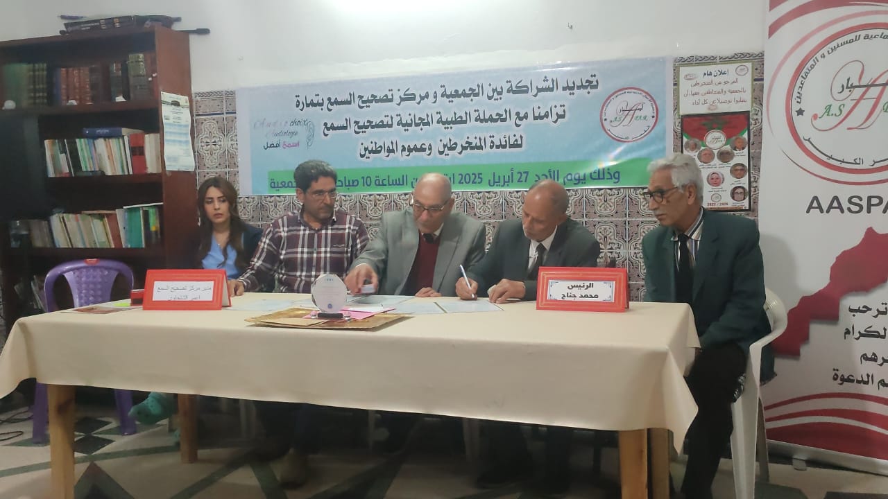 في ختام الحملة تم تجديد وتوقيع الشراكة التي تجمع بين جمعية الأعمال الاجتماعية للمسنين و المتقاعدين بالقصر الكبير ومركز تصحيح السمع بتمارة ، حيث