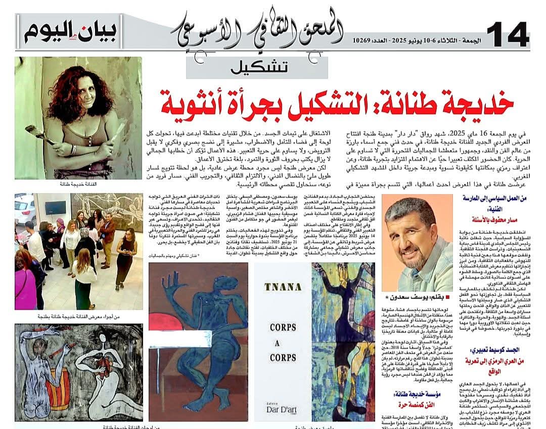 في يوم الجمعة 16 ماي 2025، شهد رواق “دار دار” بمدينة طنجة افتتاح المعرض الفردي الجديد للفنانة خديجة طنانة، في حدث فني جمع أسماء بارزة من عالم الفن والنقد، وجمهورًا متعطشًا للجماليات المتحررة التي لا تساوم على الحرية. كان الحضور المكثف تعبيرًا حيًا عن الاهتمام المتزايد بتجربة طنانة، وعن اعتراف رمزي بمكانتها كأيقونة نسوية ومبدعة جريئة داخل المشهد التشكيلي المغربي.