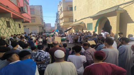 واستجابة لبلاغ الهيئة المغربية لنصرة قضايا الأمة الداعي جماهير الشعب المغربي إلى المشاركة القوية والواسعة في فعاليات جمعة طوفان الأقصى رقم 96؛ نظمت ساكنة القصر الكبير وقفتين احتجاجيتين عقب صلاة جمعة3 أكتوبر 2025 بكل من مسجد روافة العليا بحي السلام بوشويكة ومسجد السلام (الفقراء) بحي الشرفاء ولاد احميد وذلك تحت شعار: