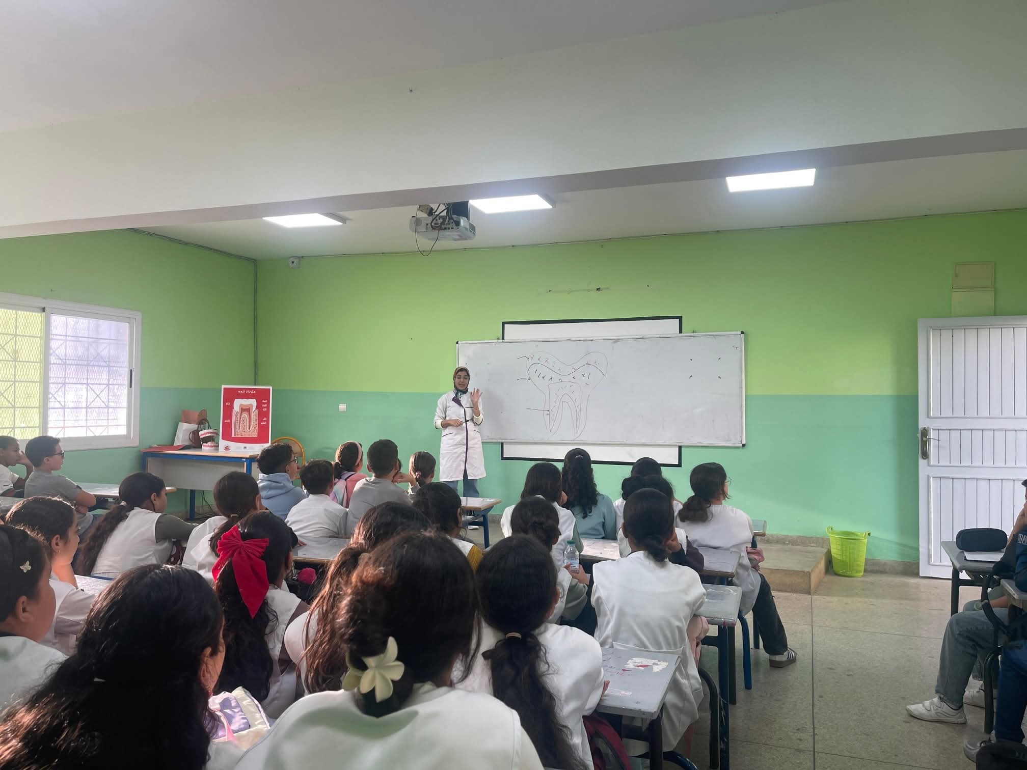 وقد أشرفت على تأطير هذا اللقاء الدكتورة #آمال_امساعد، أخصائية في طب الأسنان، حيث قدمت للتلميذات والتلاميذ عرضًا مبسطًا وغنيًا بالمعلومات حول كيفية الحفاظ على صحة الفم، طرق الوقاية من التسوس، والعادات اليومية السليمة التي تضمن ابتسامة صحية ومتوازنة. وقد تميز النشاط بتفاعل كبير من طرف المتعلمين الذين طرحوا أسئلة مهمة أظهرت رغبتهم في تبني سلوكيات صحية أفضل.