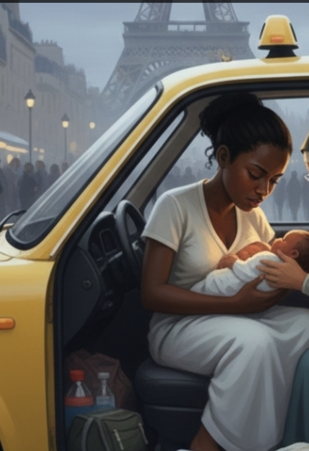ثم كان ممر هرم متحف اللوفر. في الظلام، كان يبدو كقلعة مهجورة تحرس كنوزا لا تقدر. فكرت: كم لوحة هنا تصور معاناة وولادة؟ الموناليزا، ونابليون ومريم العذراء وآلامها المقدسة بين روائع الفن وقصص الحروب والثورات… وها هي مريم أخرى، مجهولة الاسم، من أفريقيا، تئن في المقعد الجلدي لسيارتي المتواضعة.