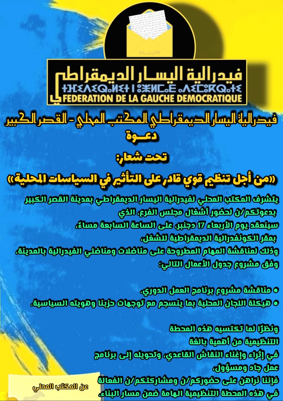 يتشرف المكتب المحلي لفيدرالية اليسار الديمقراطي بمدينة القصر الكبير