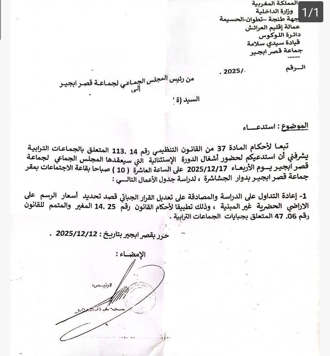 جماعة قصر ابجير : تخصيص دورة استثنائية كاملة لإعادة طرح نقطة مرفوضة.