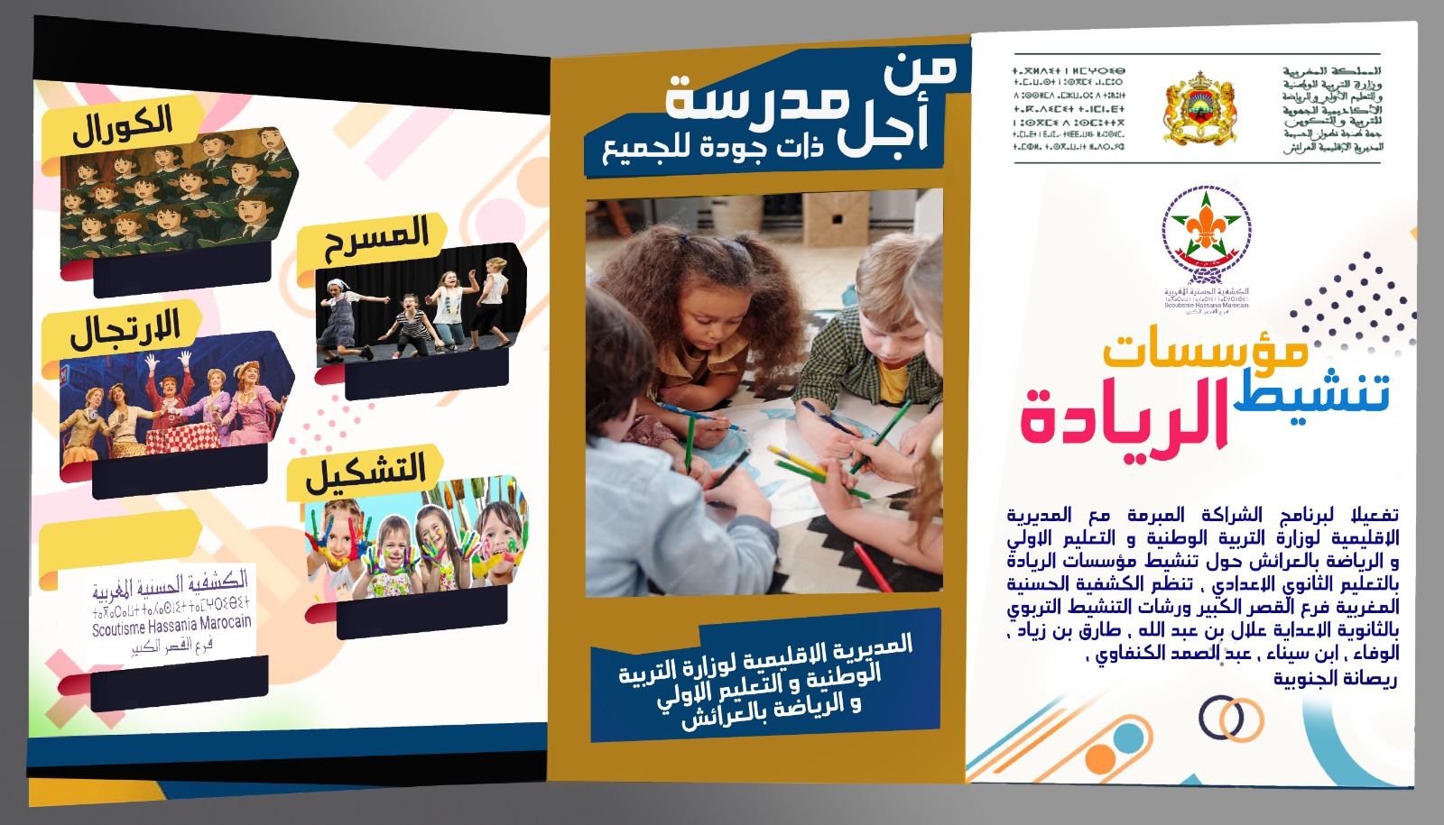 في إطار تفعيل برنامج مؤسسات الريادة، وتنزيلًا لمقتضيات خارطة الطريق 2022-2026 لإصلاح منظومة التربية والتكوين، تم تنظيم ورشات التنشيط التربوي لفائدة عدد من المؤسسات التعليمية، وذلك في إطار شراكة متميزة بين المديرية الإقليمية لوزارة التربية الوطنية والتعليم الأولي والرياضة بالعرائش والكشفية الحسنية المغربية – فرع القصر الكبير.