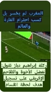 وبعد عودة أعضاء الفريق المنسحب. وفي خضم هذا الارتباك، وجو تشتيت التركيز تقدم إبراهيم دياز هداف هذه النسخة من كأس إفريقيا، لتنفيذ ضربة الجزاء، لكن تسديدته كانت جد ضعيفة، وكأنها تقول:( نفضل الأخوة والتلاحم الإفريقي على تسجيل هدف في لحظة انقسام). ولا يستغرب هذا الفعل من لاعب اختار اللعب بقميص المغرب بدل قميص المنتخب الإسباني؟ فمن اختار الانتماء إلى إفريقيا، لا عجب أن يقدم الوحدة على الانتصار، والمبدأ على الهدف.