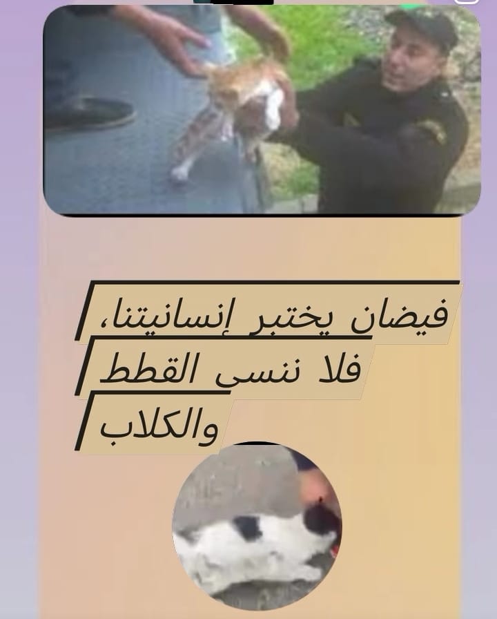 ر سالتي الأخيرة التي أختم بها النداء : لنثبت أن الرحمة لا تغرق مع الفيضان، وأننا لا ننسى حتى أضعف المخلوقات في وقت الشدة. إنقاذ هذه الأرواح البريئة هو امتحان لإنسانيتنا، فلنكن جميعا على قدر المسؤولية.