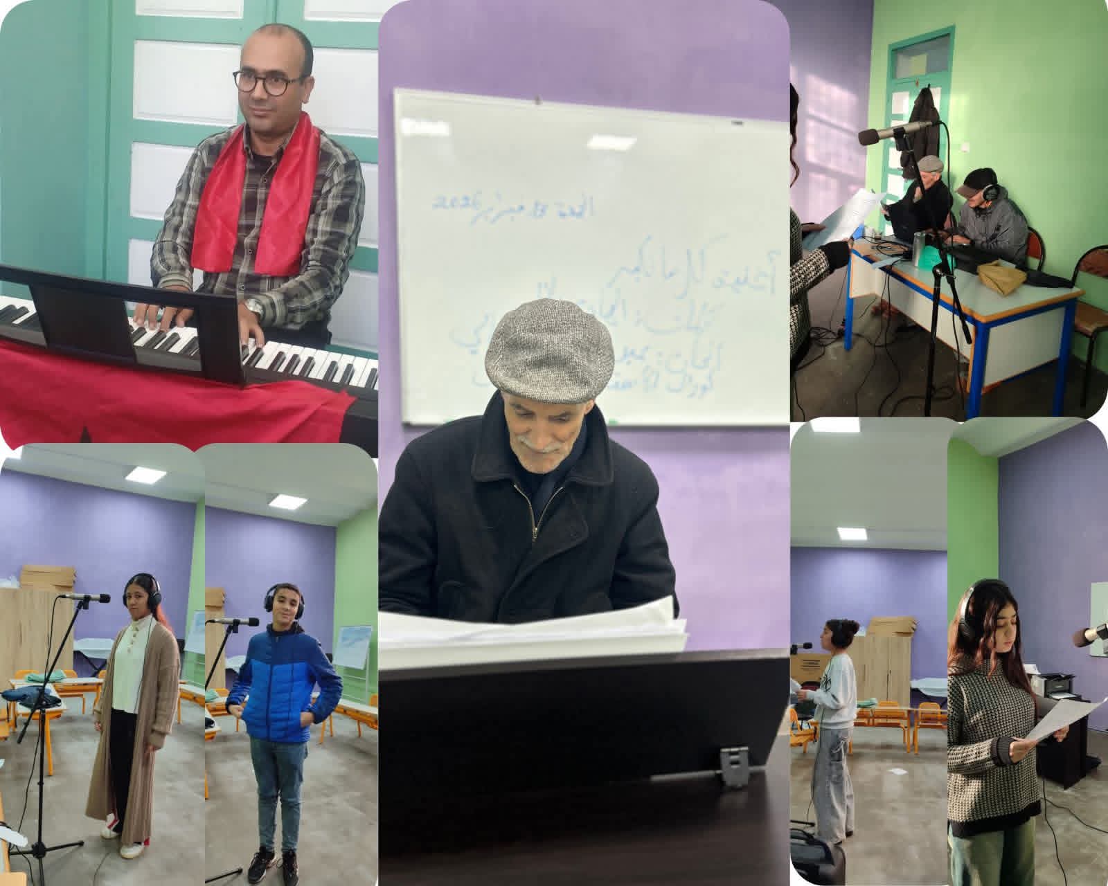– تسجيل مقاطع الكورال لأغنية وطنية جديدة بعنوان “حب الوطن أكبر”، من ألحان الفنان عبد المطلب الرحالي.