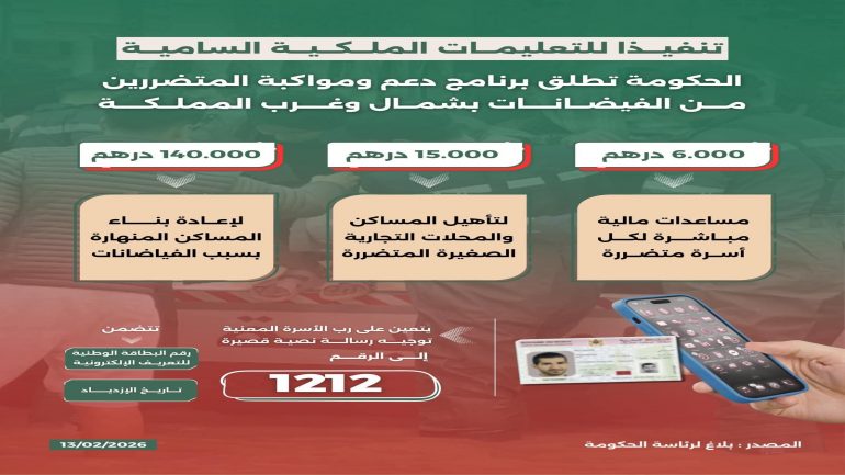 استبشر عدد كبير من المواطنين المتضررين من أخطار فيضان اللوكوس خيرا بعد الإعلان عن صرف دعم مباشر لفائدتهم، في خطوة لقيت ارتياحا واسعا في أوساط الأسر التي تكبدت خسائر جراء السيول التي اجتاحت ضفاف نهر اللوكوس والمناطق المجاورة.