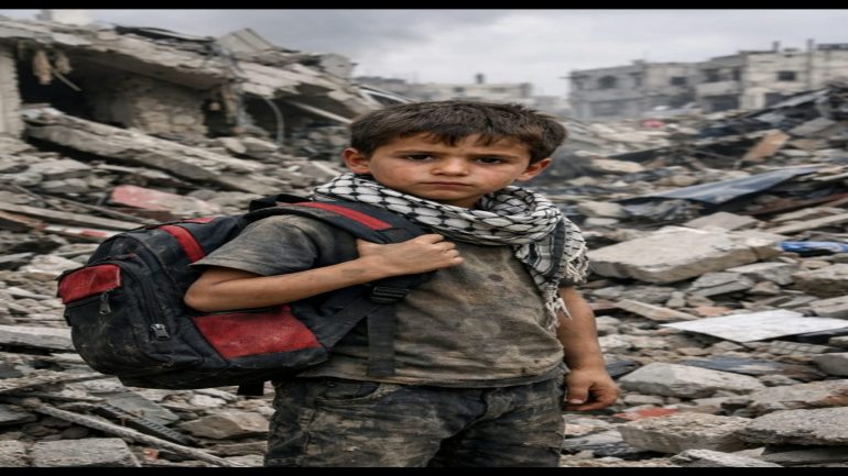 جلس غسان قرب الحائط المهدّم، يحتضن حقيبته المدرسية، كأنها آخر ما تبقّى من حياته السابقة. لم يعد يعرف لماذا هو هنا، ولا إلى أين سيذهب.