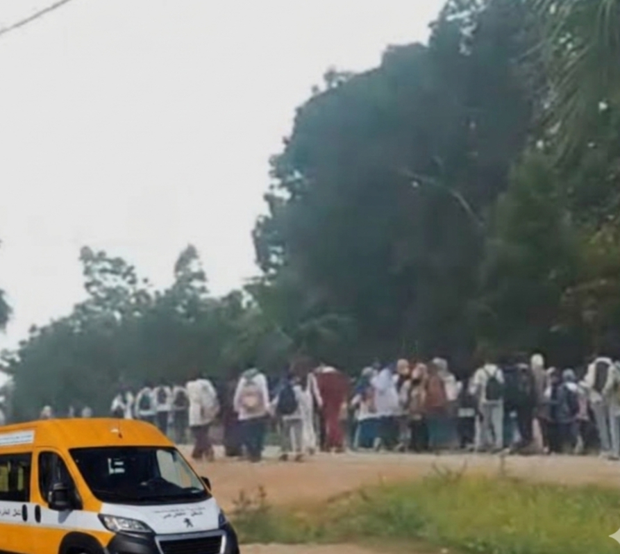 وكانت المنطقة قد عاشت خلال الأيام الماضية على وقع شلل شبه تام في خدمات النقل المدرسي، بسبب إضراب سائقي الحافلات احتجاجا على تأخر صرف مستحقاتهم المالية، وهو ما دفع العديد من التلاميذ إلى التغيب عن الدراسة أو قطع مسافات طويلة سيرا على الأقدام، في ظروف وصفت بالصعبة والخطيرة، خاصة بالنسبة للفتيات.