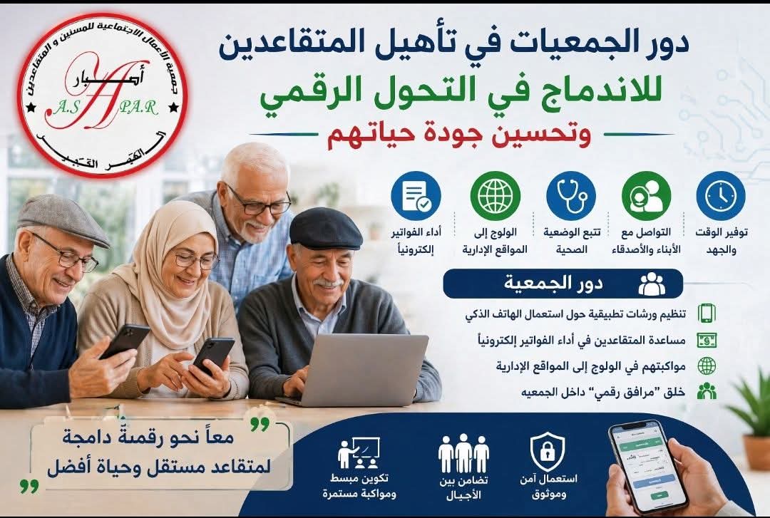 وتبرز كذلك أهمية توفير فضاءات رقمية داخل مقرات الجمعيات، تُمكّن المتقاعدين من التعلم والتطبيق في آن واحد، مع ضرورة العمل على تبسيط الخدمات الرقمية من طرف المؤسسات، حتى تكون في متناول الجميع. ولا يقل جانب التوعية أهمية، خاصة فيما يتعلق بكيفية الاستعمال الآمن للتكنولوجيا وتفادي مخاطر الاحتيال الإلكتروني، مما يعزز عنصر الثقة لدى هذه الفئة.